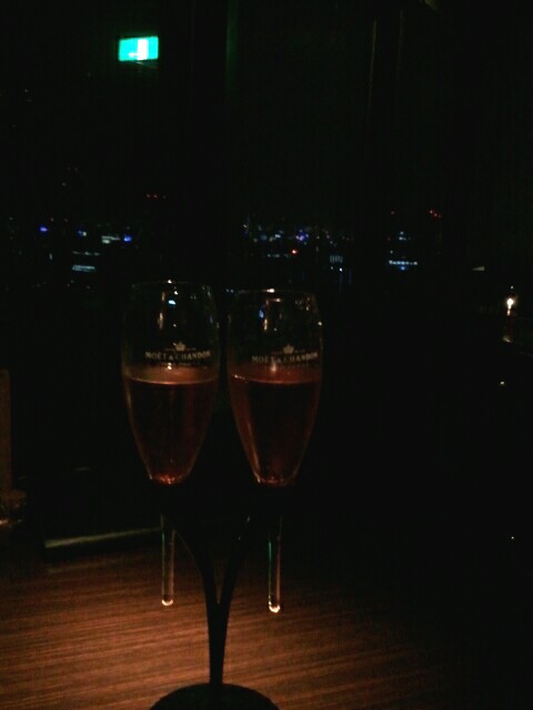 ヒルトン大阪35F @mtksさんと、バーで乾杯☆取っ手からグラスを抜きとってお酒をいただくスタイルなのですが、こちらが運ばれてきた時思わず顔を見合わせてしまいました。大きいパフェを二人でいただく・・・的な感じを想像してしまったので(笑)楽しい夜でした♪