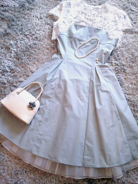 Dress 結婚式用のドレスは結局気に入ったものが見つからなかったので、手持ちのワンピにしました♪ふわふわシルエットのためとはいえ、夏のパニエは暑かったです(>_<)ボレロ 高島屋フォーマルサロン他 Foxey