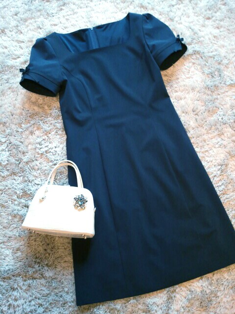 Rainy Cherbourg 雨の日はレイニーシリーズのワンピで♪こちらはビジネスシーンにも好適ですので大活躍しております。。・:*:・゚☆ランチタイムに、ボスと先輩と夏休みの過ごし方についてお話ししていたところ「考え方が男だね(笑)」と笑われてしまいました(>_<)合理的と仰ってください〜!Navy OP: foxey ny