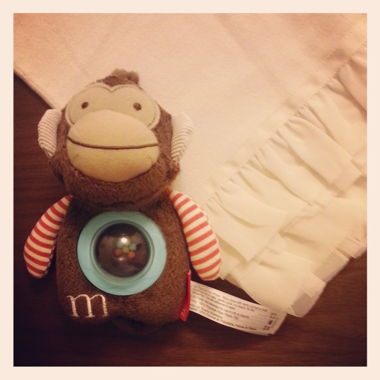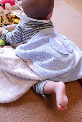sugarちゃん、aiちゃんにお祝いでいただいたスリーパー。肌ざわりがとても良いので、お昼寝のときはブランケットがわりに使わせていただいています♪空色とベージュの色あわせも綺麗です。